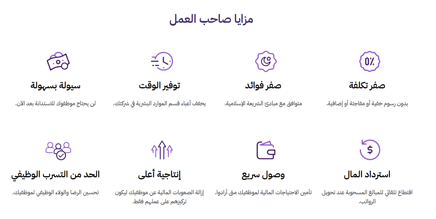 - جعلت الموظف يحصل على جزء من راتبه متى احتاج دون انتظار نهاية الشهر.